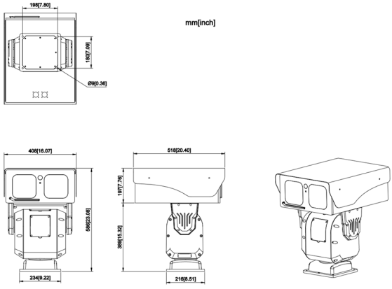 Pan: 360 ° huri; Tilt: - 70 ° ~ + 20 ° |